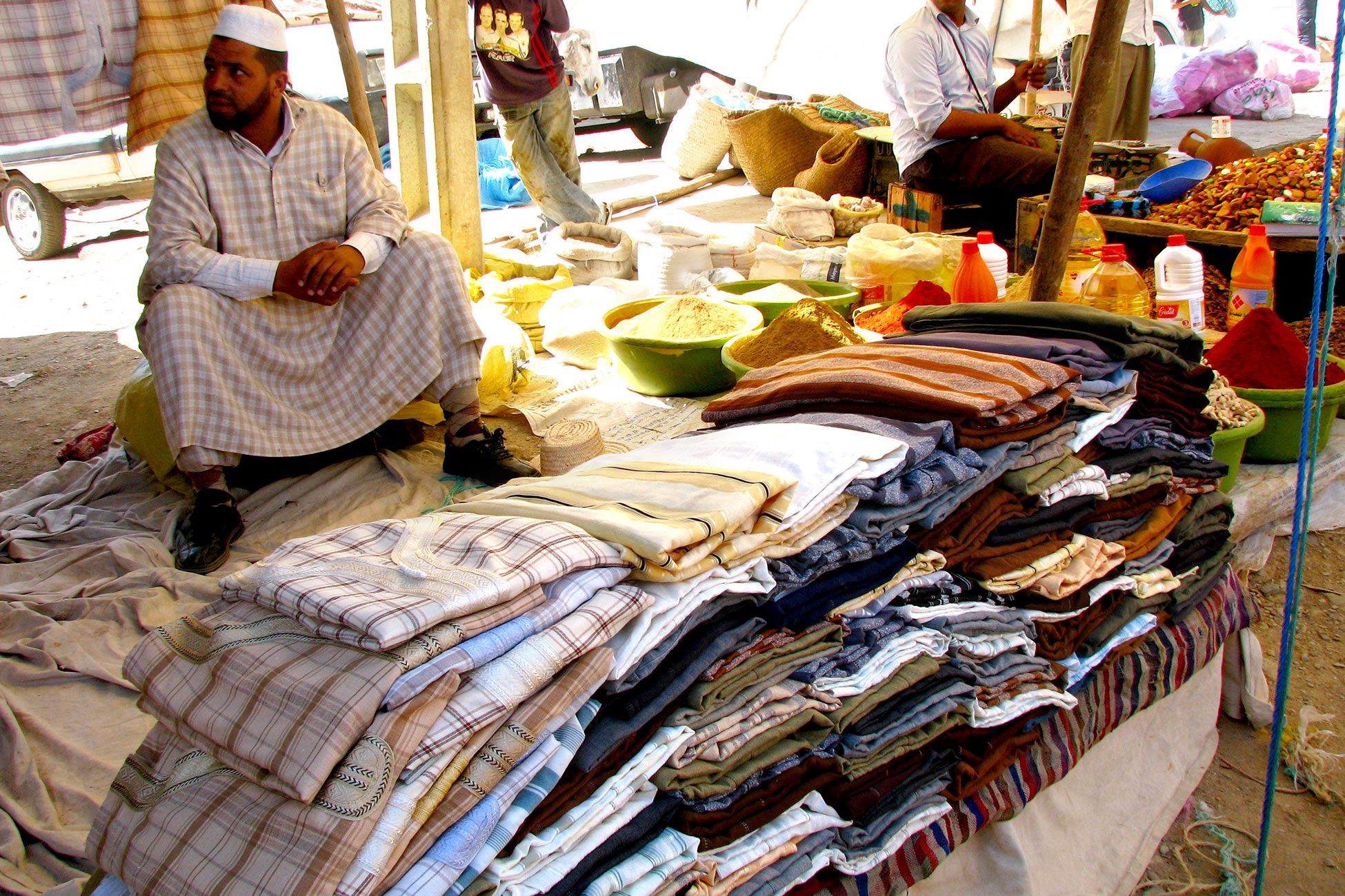 Não há absolutamente nenhuma exigência de comprar qualquer coisa no souk. Na verdade, a maioria dos que o visitam simplesmente gosta de ver a emoção de um mercado rural berbere semanal, com todas as trocas sociais e comerciais que acontecem. No entanto, há uma série de itens disponíveis que antigos clientes compraram no souk: henna, especiarias, tapetes, sapatos berberes, cerâmica, roupas berberes para homens e mulheres, utensílios de cozinha feitos à mão em madeira e muito mais. Se você quiser comprar algo, seu guia pode perguntar o preço de qualquer item. Negociar é normal, por isso é melhor decidir antecipadamente quanto você está disposto a pagar por algo. Se você oferecer um preço e o comerciante aceitar, espera-se que você compre o item, portanto, só faça ofertas depois de decidir que realmente deseja um item.
