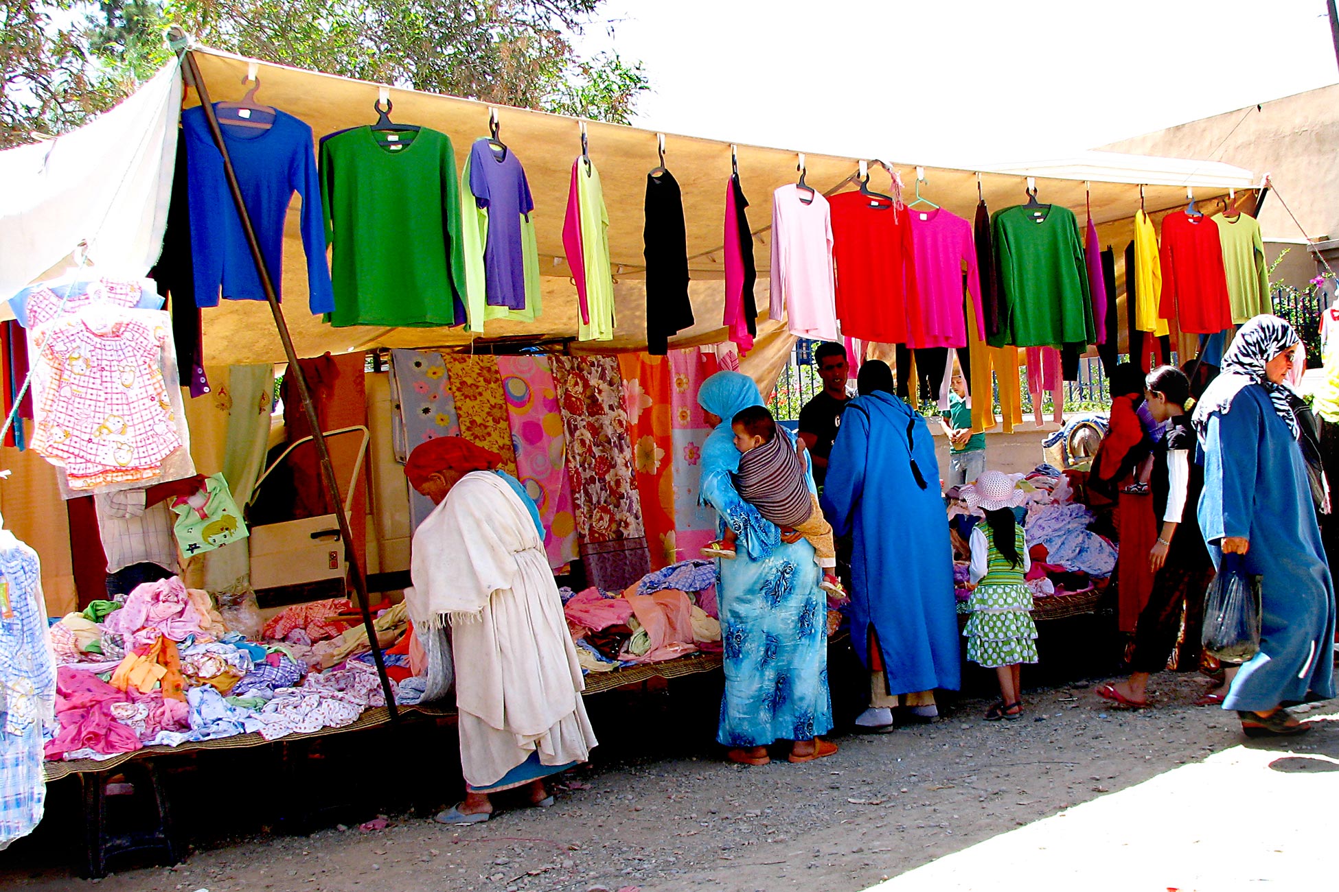 As roupas devem ser relativamente modestas e cobrir as pernas, ombros e braços (as vilas marroquinas não são como as grandes cidades onde você pode ver mais roupas de estilo ocidental). Para as mulheres, isso geralmente significa calças compridas que cobrem completamente as pernas e sem camisas sem mangas. Para os homens, calças compridas são normais, mas shorts nos meses de verão também são aceitáveis. Todos devem usar um par de sapatos ou botas de caminhada bons e confortáveis.